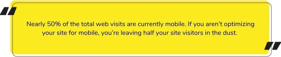Fun fact: Nearly 50% of web visits in the US are from users on mobile devices.” If you aren’t optimizing your site for mobile, you’re leaving half your site visitors in the dust.